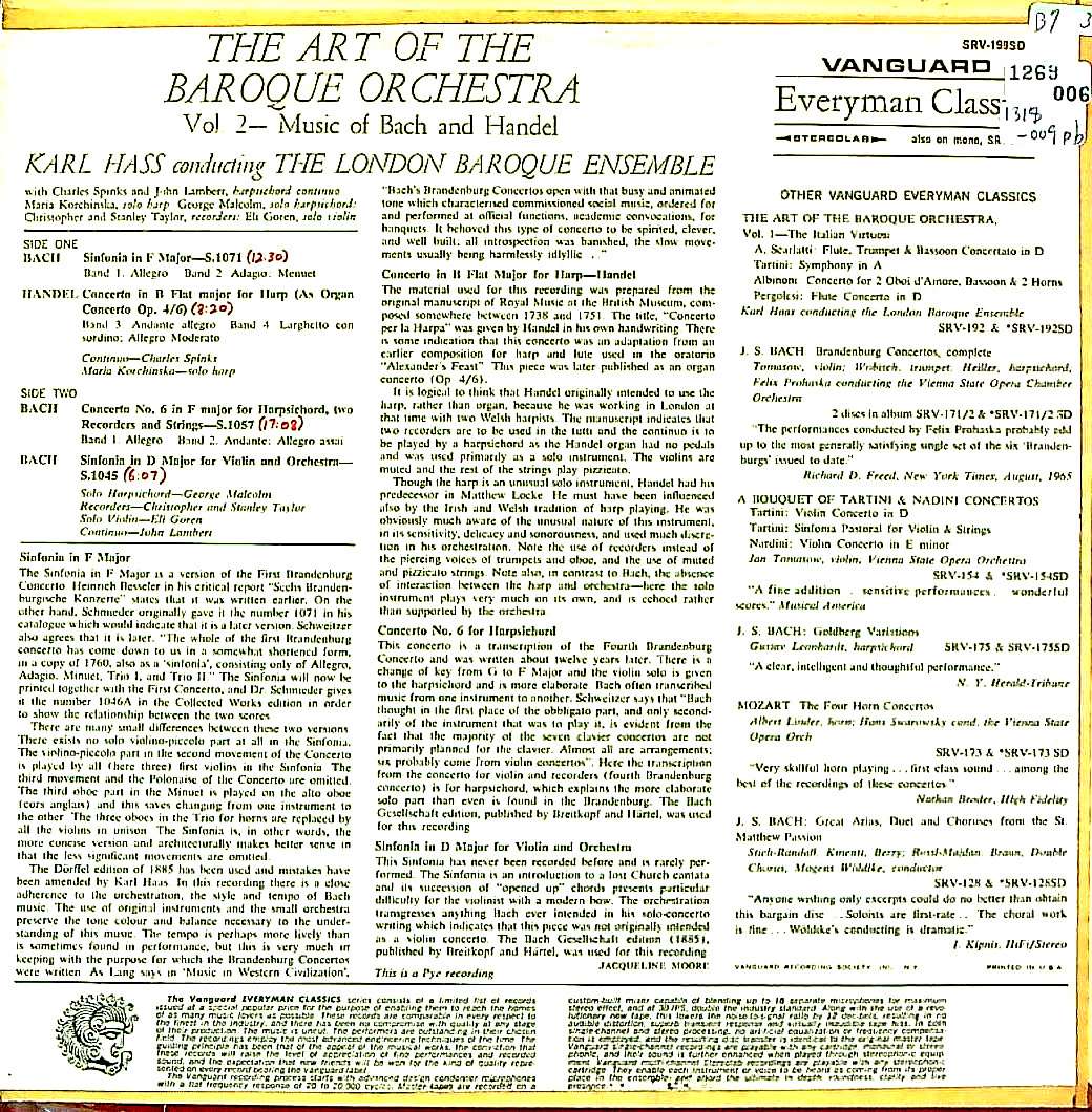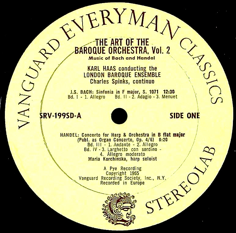 商品コード:1318-009pb[VANGUARD] K.ハース指揮 G.マルコム, C.スピンクス, J.ランバール(cemb) M.コルチンスカ(hp)/ ヘンデル:Hp協奏曲, バッハ:Cemb協奏曲6番 他