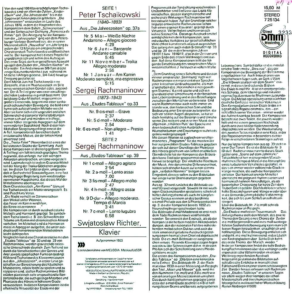 商品コード:REG-3233t[東独ETERNA] S.リヒテル(pf) / チャイコフスキー:「四季」~1月, 5月, 6月, 11月, ラフマニノフ