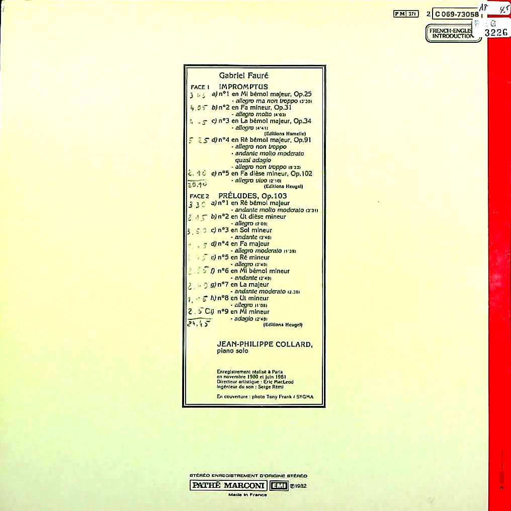 商品コード:REG-3226[仏VSM] J.P.コラール(pf) / フォーレ:即興曲1-5番, 9つの前奏曲