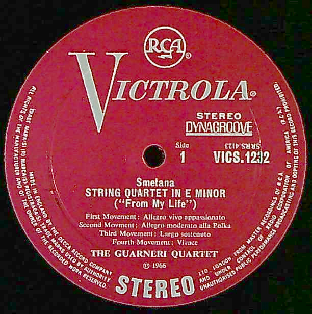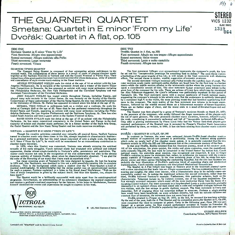 商品コード:1319-064[RCA] グァルネリQt. / 弦楽四重奏曲/スメタナ:1番「わが生涯より」, ドヴォルザーク:14番