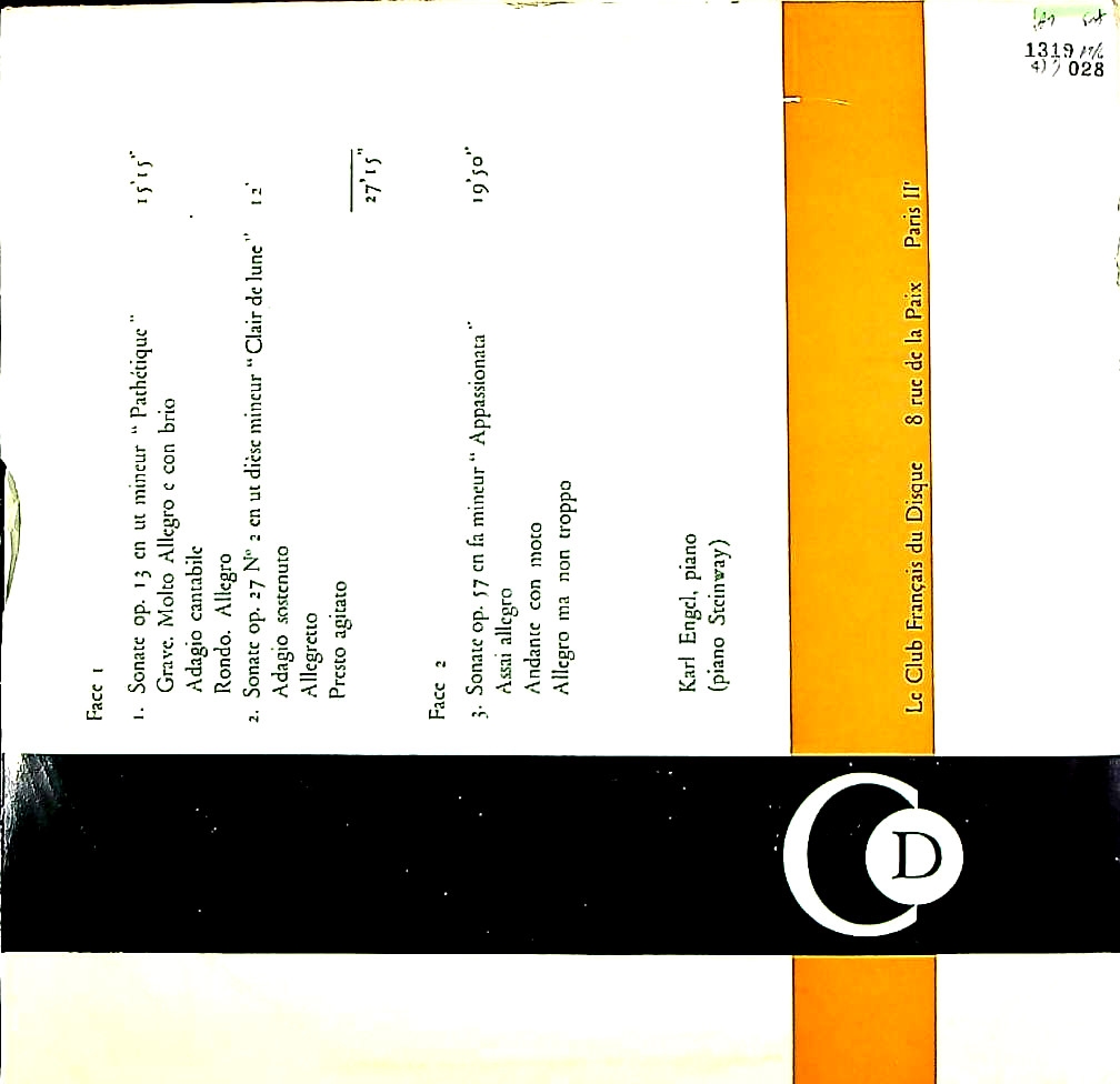商品詳細:あるフランス人コレクターが個人として40年に亘って収集した演奏家別のコレクションをそのまま「コレクターズ・シリーズ」としてセットで出すことにした。当社では初の試みとなる。長年かけた厖大な時間はお金には換算できない。また縁あって集まったコレクションを散逸させず後世に受け継ぐことも国を跨いだ文化継承になるだろう。レーベルは複数にまたがり、オリジナル盤だけとは限らない、また意に沿わない国の盤が混じることもある。それらをご承知の上でご検討いただけると幸いである。基本バラセットである。ご興味のある方は是非この機会に!今回は「カール・エンゲル」。カール・エンゲル(1923 - 2006)はスイスのビルスフェルデン生まれのピアニスト。1942年からベルン音楽院でパウル・バウムガルトナーに師事し、その後パリに行き、1947年から翌年までエコール・ノルマル音楽院でアルフレッド・コルトーの指導を受けた。1951年にはフェルッチョ・ブゾーニ国際ピアノ・コンクールで3位、1952年にはエリザベート王妃国際音楽コンクールで2位入賞。モーツァルトのピアノ協奏曲全曲録音は高く評価されている。一方、ドイツ・リートの伴奏者としても活躍し、プライ、フィッシャー=ディースカウらの伴奏を務めている。また室内楽の分野でも、トルトゥリエ、カザルスらと共演し、ニュアンスを大切にする表現が好評を得ている。1958年~1986年までハノーファー音楽演劇大学で教鞭を執り、1989年から世界各地でマスター・クラスを開いた。日本では決して人気があったとは言えないピアニストだが、1950年代からドイツ系メジャーレーベルに録音を残し、その実力は確かなものがあり、欧州では認められている。歌曲の伴奏に重宝されてきた経緯から一部には伴奏ピアニストのような評価も無くはない。これは珍しいベートーヴェンの3大ソナタ演奏で、1958年パリでモノラル録音されたもの。この時まだ30代半ばの若きエンゲルであり、コルトーの弟子の中では珍しい、カッチリしたドイツ風の楷書的な演奏スタイル。聴いてすぐにエンゲルの演奏だとわかるような個性はないものの、ドイツ、オーストリア系のピアニストだと認識できる。技巧もしっかりしており、抑揚もあり曲の構築は上手い。どこまでもスタンダードに丁寧な演奏スタイル。決して粗っぽくはない。モーツァルトの録音では高い評価を得たピアニストである。ベートーヴェンも充分に聴く価値あり。マリア・ジョアン・ピレシュの師である。エンゲルのLe Club Français Du Disque録音は全部で3枚のみと思われる。