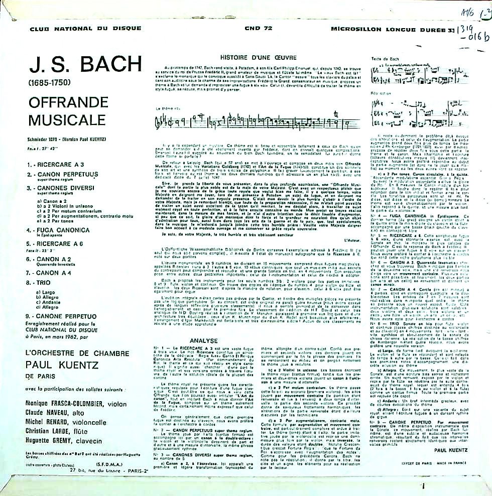 商品コード:1319-016b[CLUB NATIONAL] P.キュンツ指揮/ バッハ:音楽の捧げ物