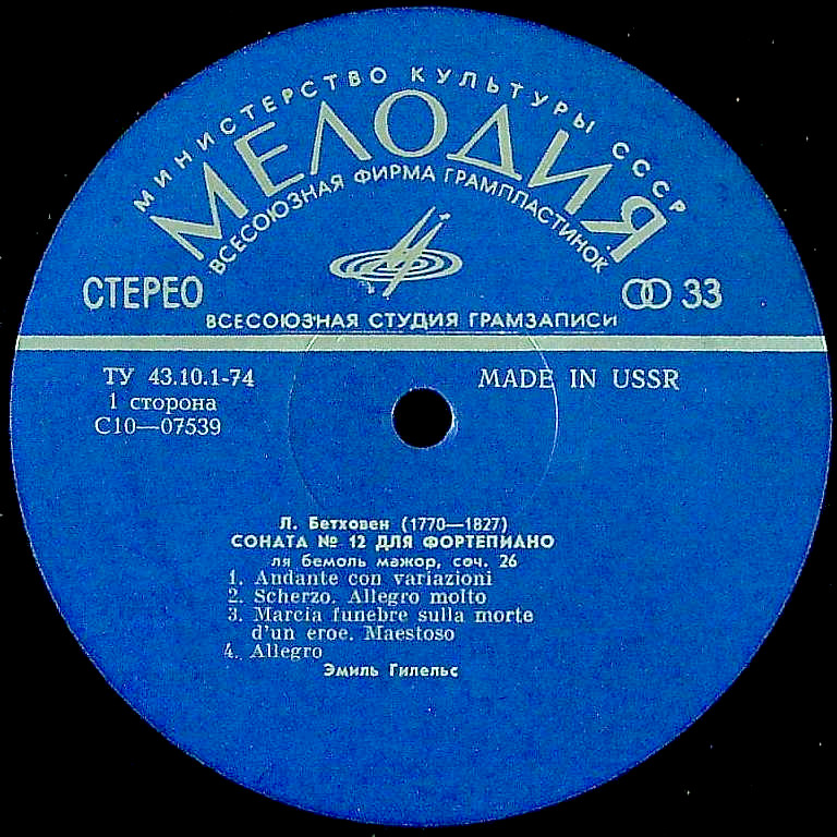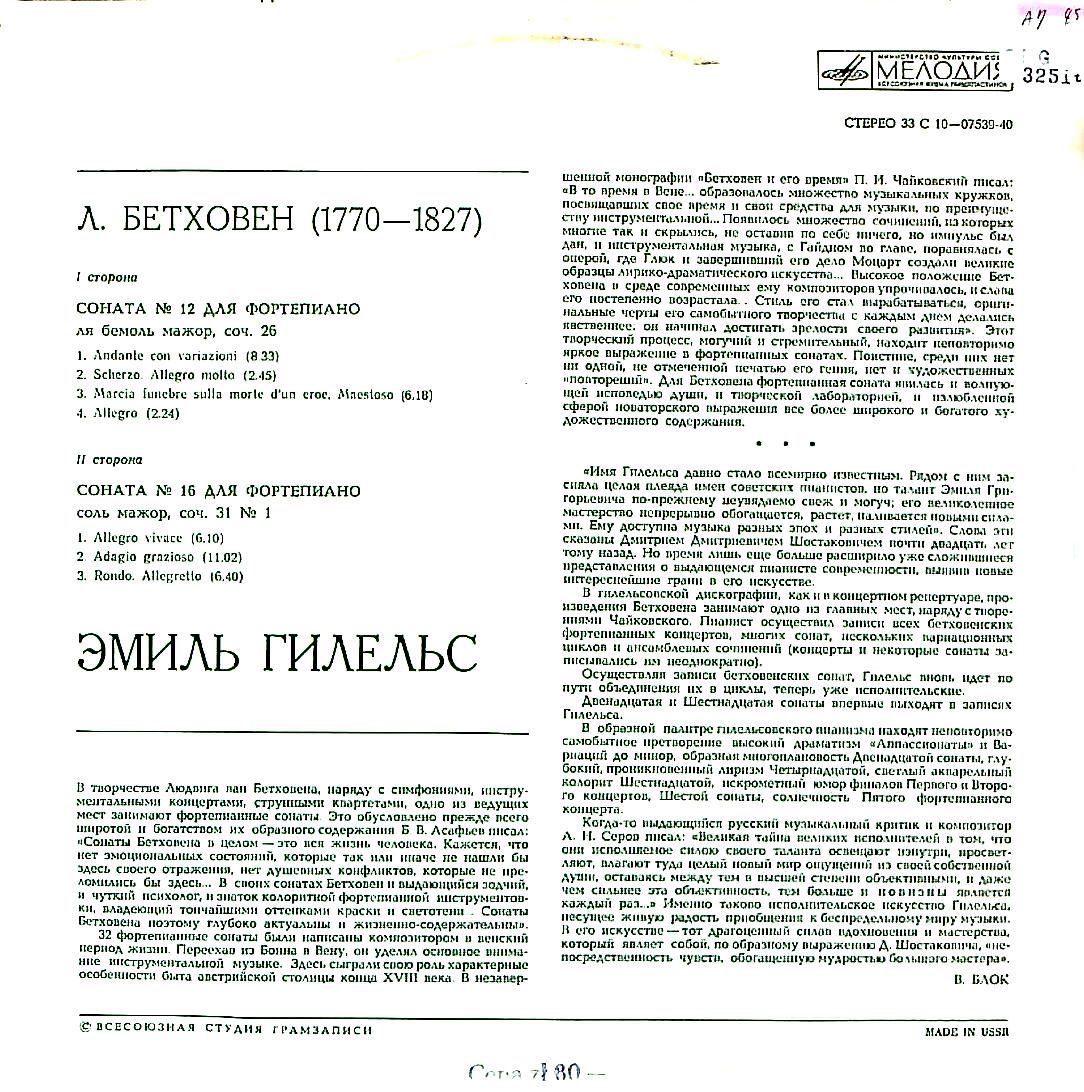 商品コード:REG-3251t[露MELODIYA] E.ギレリス(pf) / ベートーヴェン:Pfソナタ12番「葬送」, 16番