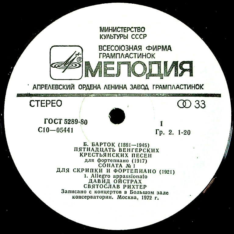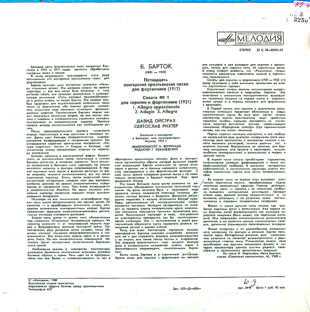 商品コード:REG-3250t[露MELODIYA] D.オイストラフ(vn)/ バルトーク:15のハンガリー民謡, Vnソナタ1番