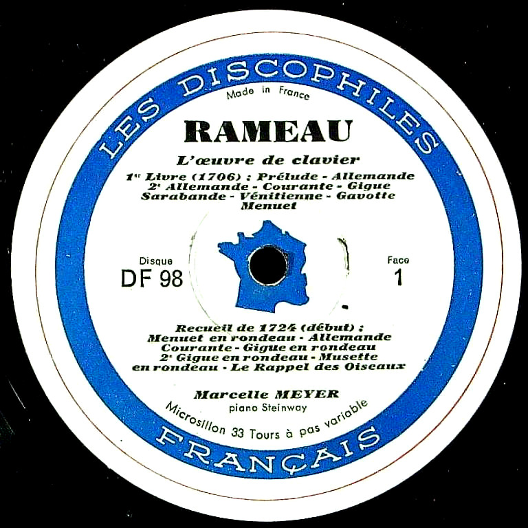 商品詳細:かのM.メイエルの代表作であり、幸いにも'80年代パテのレファレンス・シリーズで再発が出ていて、それで聴くことが出来る。盤質が良く、キズに悩まされることもなく聴けるので、大抵の方はそれで良いと思う。しかし、多少のノイズがあっても、本物の音に触れたいという方にはお薦めしたい。材料による多少のノイズ等はあるが、時代を考慮すると状態は良い方。Meyerの発音だが近年メイエと記載されることが多いのが気にかかる。フランス人の名前はフランス語の発音規則とは異なることが多いので注意が必要。複数のフランス人に確認していてメイエルが最も近い。それも最後のルにアクセントがある。決してメイエではない。マルセル・メイエル(1897~1958)は、パリ音楽院でマルグリット・ロンとアルフレッド・コルトーに師事したピアニストで、1913年に一等賞を獲得して卒業。エリック・サティやジャン・コクトーと親交を結び、同時期に活動したダリウス・ミヨー、フランシス・プーランクらのフランスの若手作曲家グループ「6人組」の作品を積極的に紹介し「6人組の女神」と呼ばれた。1980年代に仏パテがレファランス・シリーズでメイエルのLPをかなり復刻し、それまで幻に近かったマルセル・メイエルの録音を誰でも聴くことができるようになった。Les Discophiles Françaisのオリジナル盤が国内に入ってきたのは1990年代に入ってからだろう。盤質の良いもの、日本人が許せる範囲のものはあっても僅かだろう。しかしオリジナル盤で聴くことで一層メイエルのピアニズムは明確になる。ロシアピアニズムを決して模範としなかったフランス・スクールのスタイルにはそれが何らかの原因で不可能だったからではないかと考えられる。勿論現在のフランスでも不可能なことに変わりはない。様々な要因が運よく重なり、ある限られた時期にだけ可能になった芸術は音楽に限らない。絵画は複製がきかないため、価格は億単位になる。しかしレコードは複製を念頭に製造された芸術である。100万円を超えるレコードは僅かしかない。オリジナル盤の持つ力は1点ものの絵画に近い性質がある。マスターテープが劣化した今、この程度の金額でオリジナル盤という文化的遺産に触れられることを喜ぶべきと考える。ラモー(1683- 1764)はフランス・バロック期の作曲家で多くのクラヴサン曲集を残した。19世紀にラモーを再評価した人物にルイ・ディエメがいる。ラモーをピアノで演奏した最初の人物はルイ・ディエメである。彼は、デュラン社から『フランスのクラヴサン楽派』やクープランの鍵盤楽曲全集を出版し、ラモーの音楽を含むフランス・バロック音楽の再発見に尽くした。ルイ・ディエメの意思を録音として最初に残したのがマルセル・メイエルである。1946年に10曲程度をSPで録音し、DF 14でLPに復刻された。その後1953年にLPで2枚分を録音し、これがピアノによるラモー演奏の金字塔である。メイエルの演奏が完璧過ぎたため、後に続くピアニストがなかなか出てこなかった。