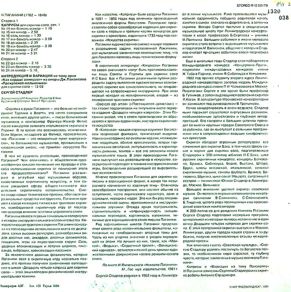 商品コード:1320-038n[MELODIYA] S.シュタードラー(vn) /パガニーニ:24の奇想曲~後半11曲 他