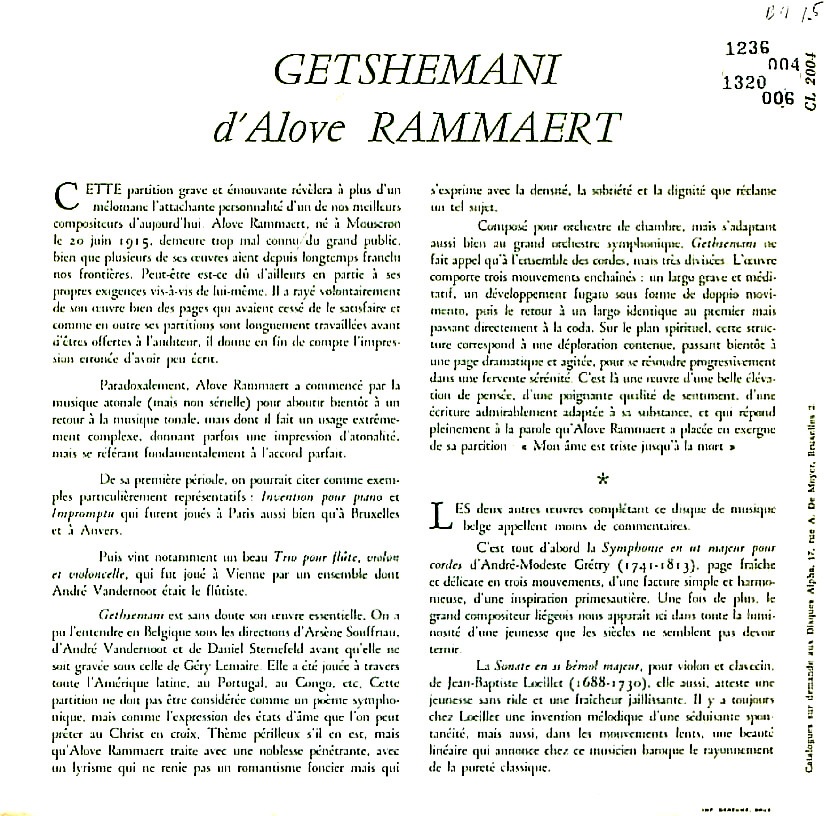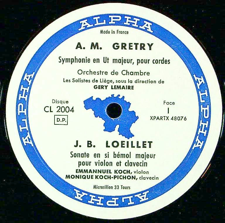 商品コード:1320-006[ALPHA] G.ルメール指揮 E.コック(vn)/ A.M.グレトリ:サンフォニー, J.B.ルイエ:Vnソナタ 他