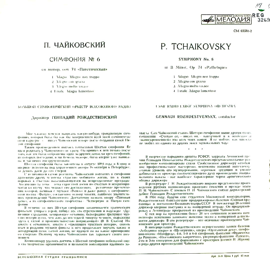 商品コード:REG-3269[露MELODIYA] G.ロジェストヴェンスキー指揮/ チャイコフスキー:交響曲6番「悲愴」