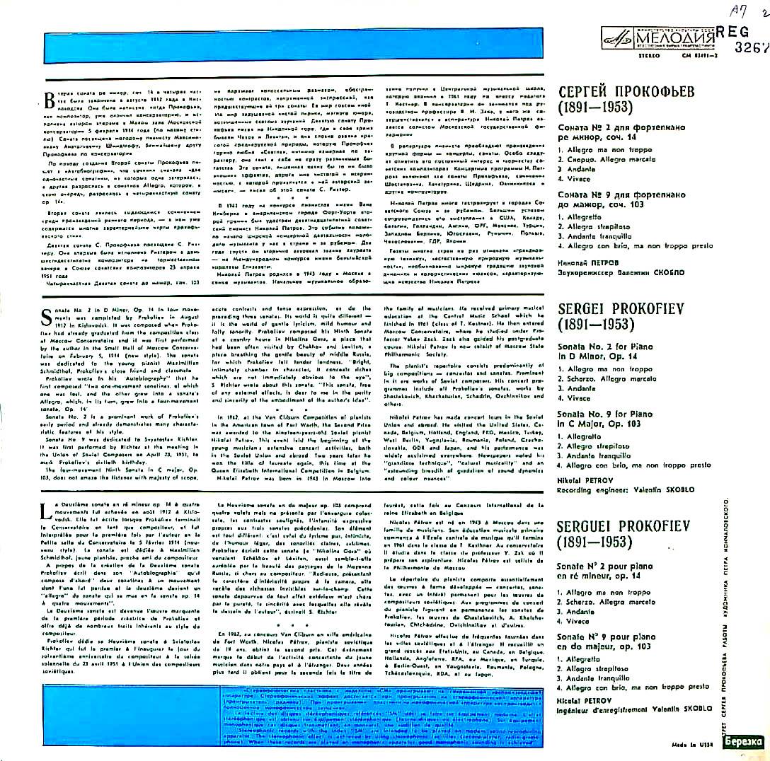 商品コード:REG-3267[露MELODIYA] N.ペトロフ(pf) / プロコフィエフ:Pfソナタ2, 9番