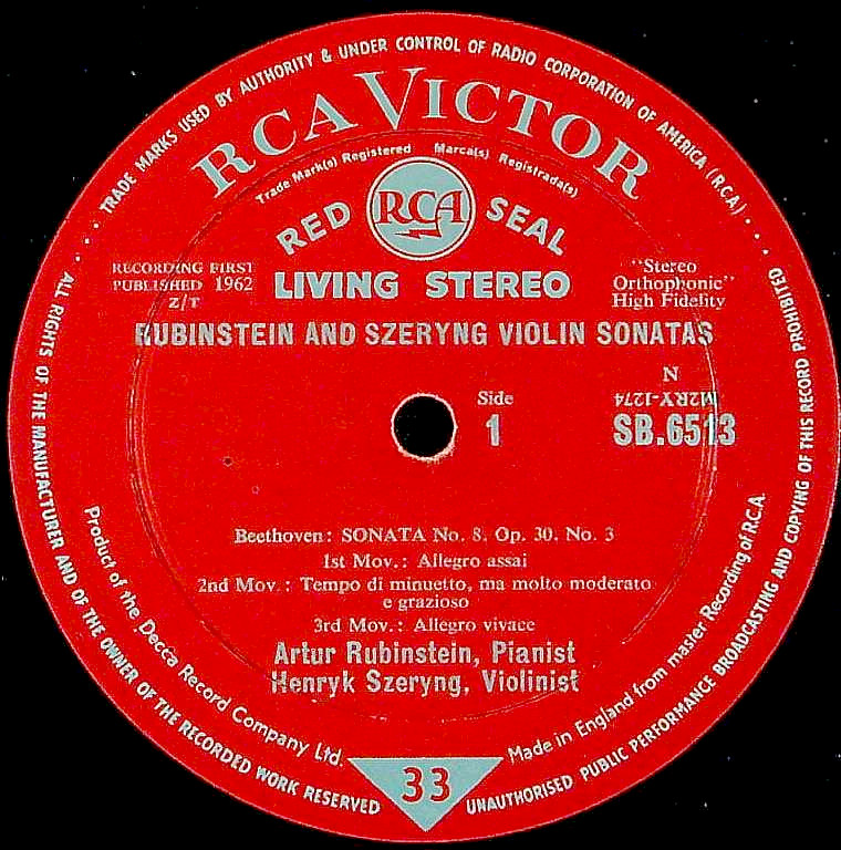 商品コード:1321-059[RCA] H.シェリング(vn) A.ルービンシュタイン(pf) / Vnソナタ/ベートーヴェン:8番, ブラームス:1番