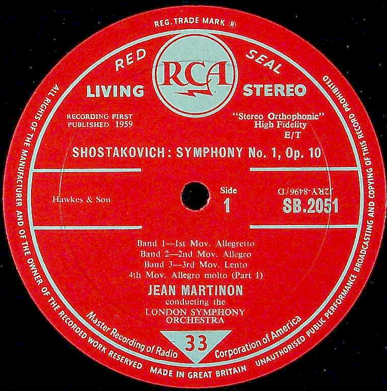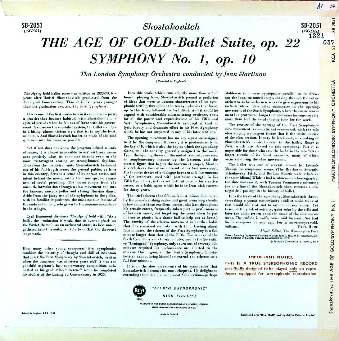 商品コード:1321-057[RCA] J.マルティノン指揮/ ショスタコーヴィチ:交響曲1番, 黄金時代