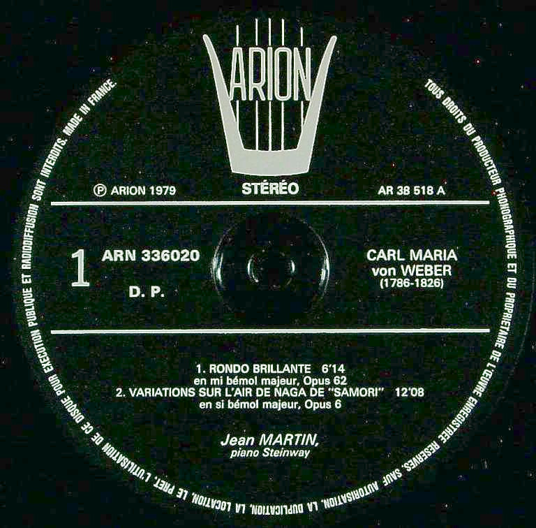 商品コード:1321-055b[ARION] J.マルタン(pf) / ウェーバー:Pf作品集