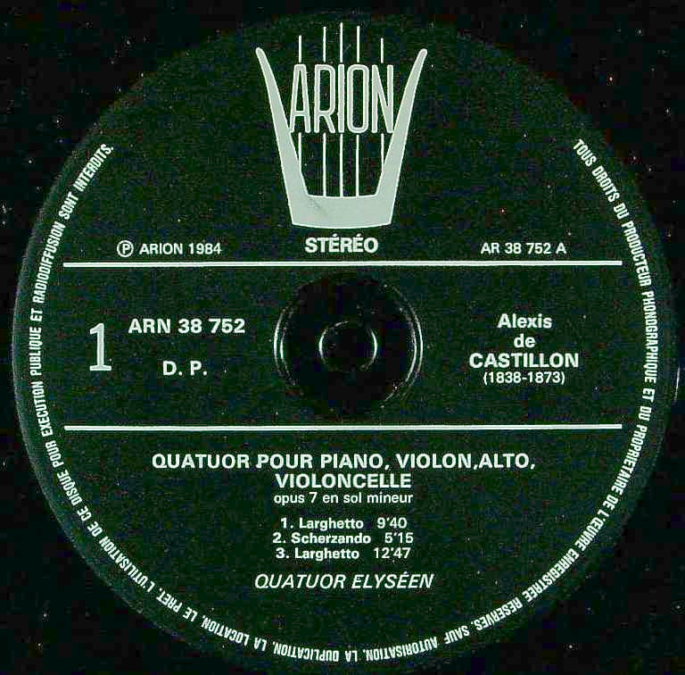 商品コード:1321-051[ARION] エリーゼPf四重奏団 / カスティヨン:Pf四重奏曲, Pfトリオ1番
