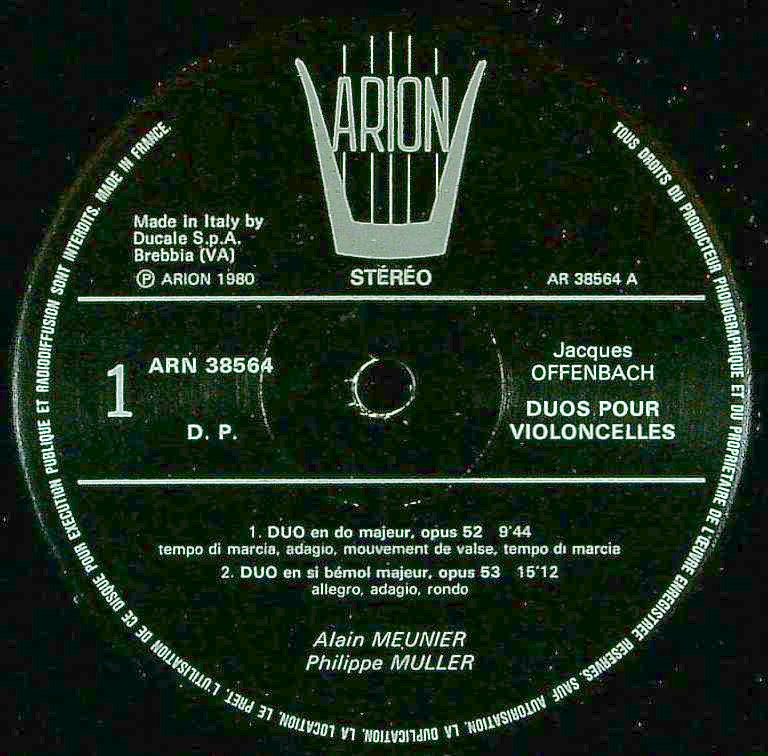 商品コード:1321-041[ARION] A.ムニエ, P.ミュレ(vc) / オッフェンバック:2つのチェロのための二重奏曲集
