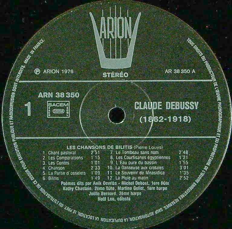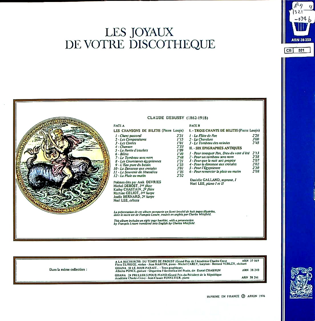 商品コード:1321-034b[ARION] A.ドゥブリ(朗読) D.ギャラン(s) N.リー(チェレスタ・pf) /ドビュッシー:ビリティスの歌, 3つのビリティスの歌, 6つの古代墓碑銘