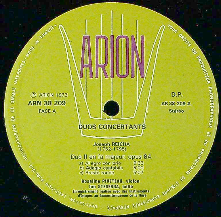 商品コード:1321-029[ARION] R.ピヴェトー(vn) J.ステンヘンガ(vc) / Vn・Vcデュオ集/J.レイハ, M&A.ボーラー
