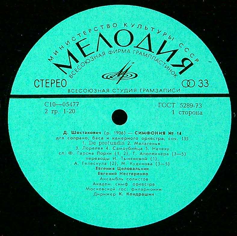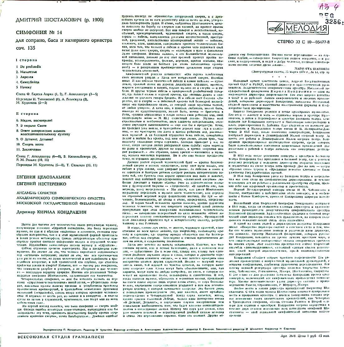 演奏者:K.コンドラシン指揮モスクワpo. J.ツェロヴァルニク(s)J.ネステレンコ(bs),国立アカデミーcho.