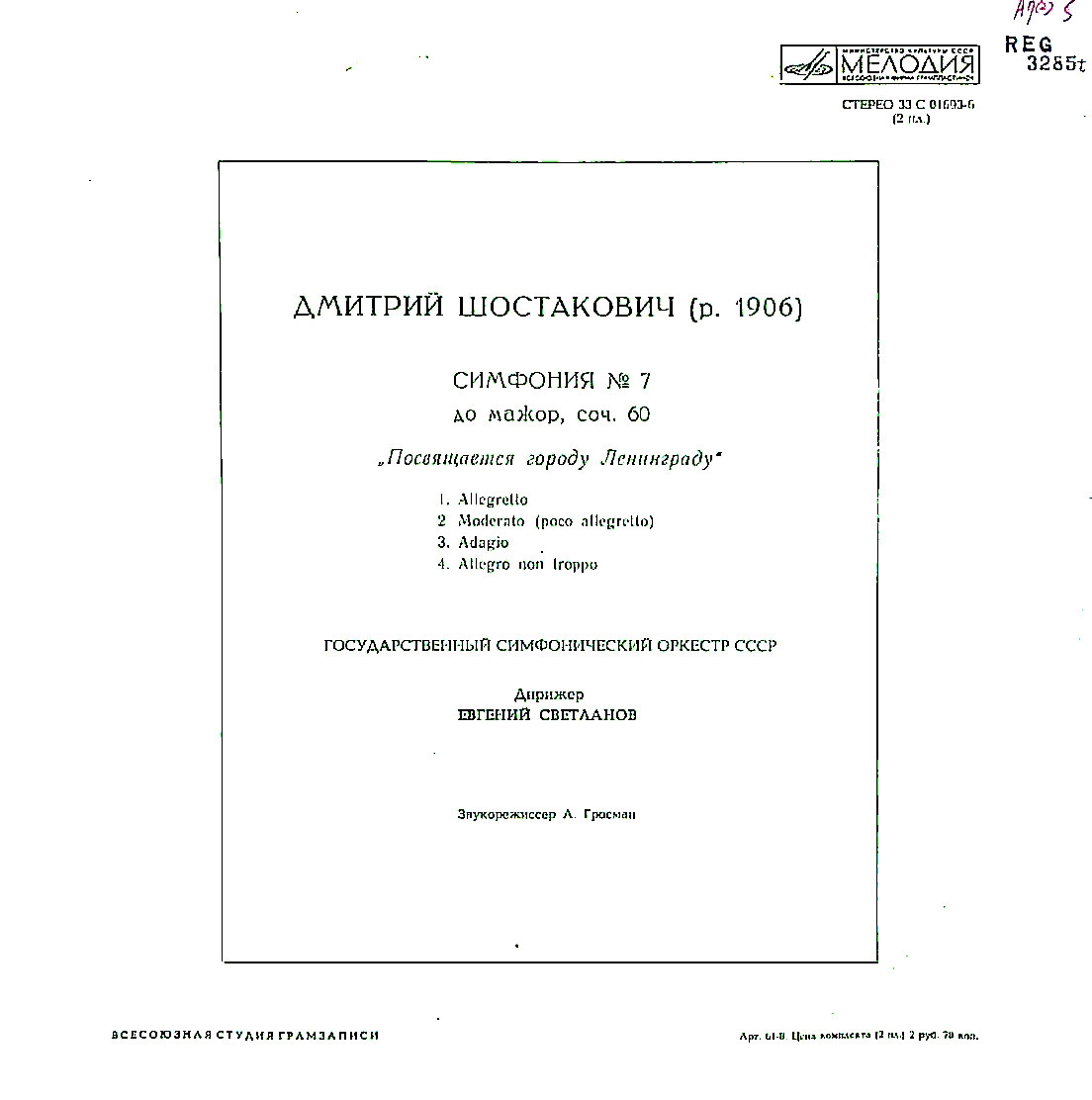 商品コード:REG-3285t[露MELODIYA] E.スヴェトラーノフ指揮/ ショスタコーヴィチ:交響曲7番「レニングラード」
