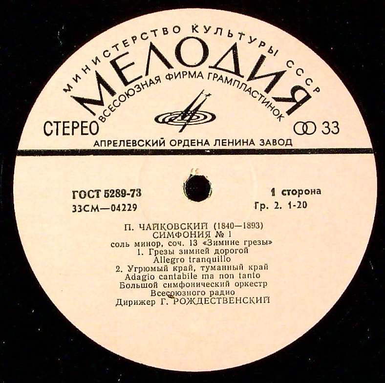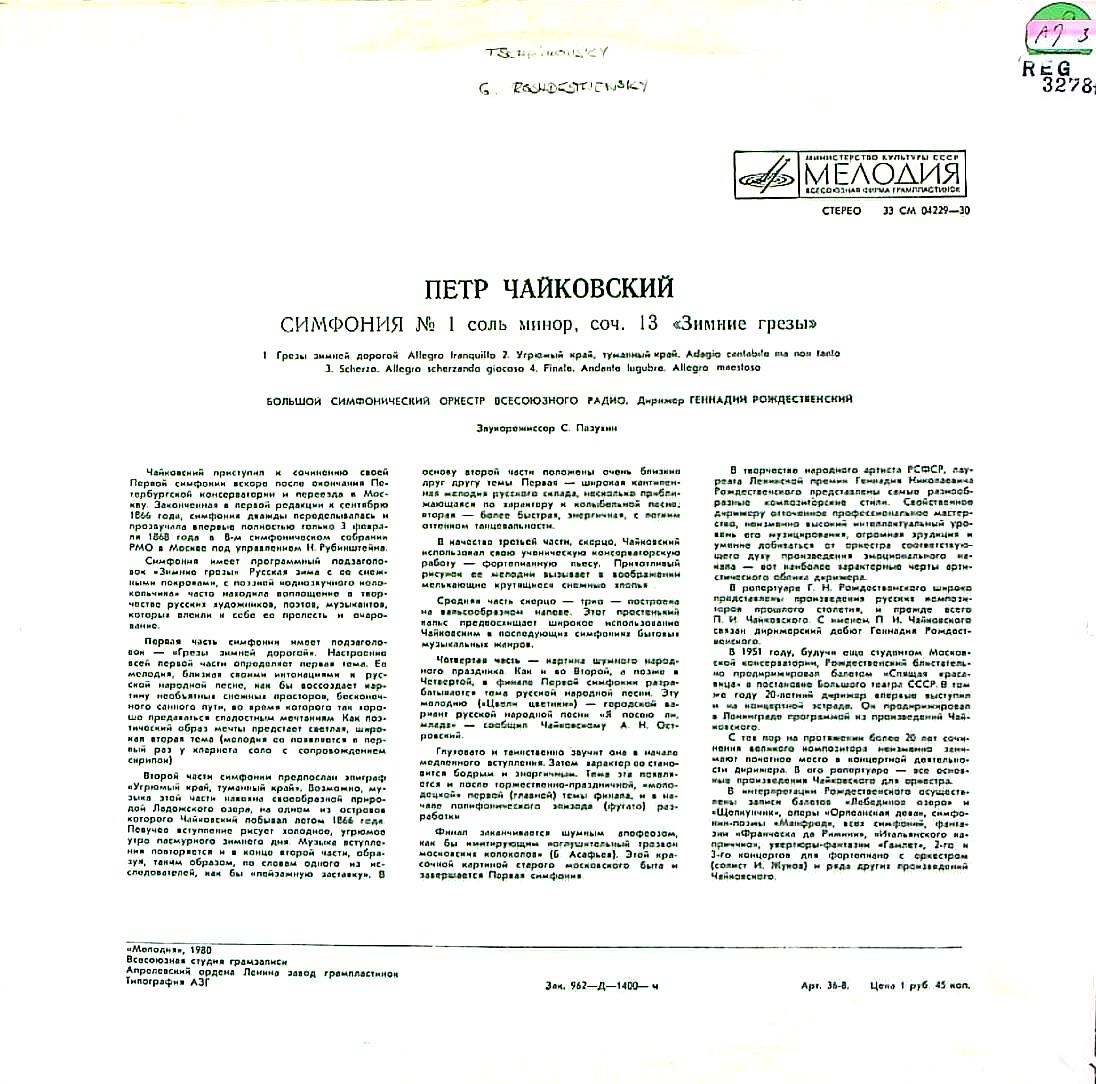 商品コード:REG-3278t[露MELODIYA] G.ロジェストヴェンスキー指揮/ チャイコフスキー:交響曲1番「冬の日の夢想」