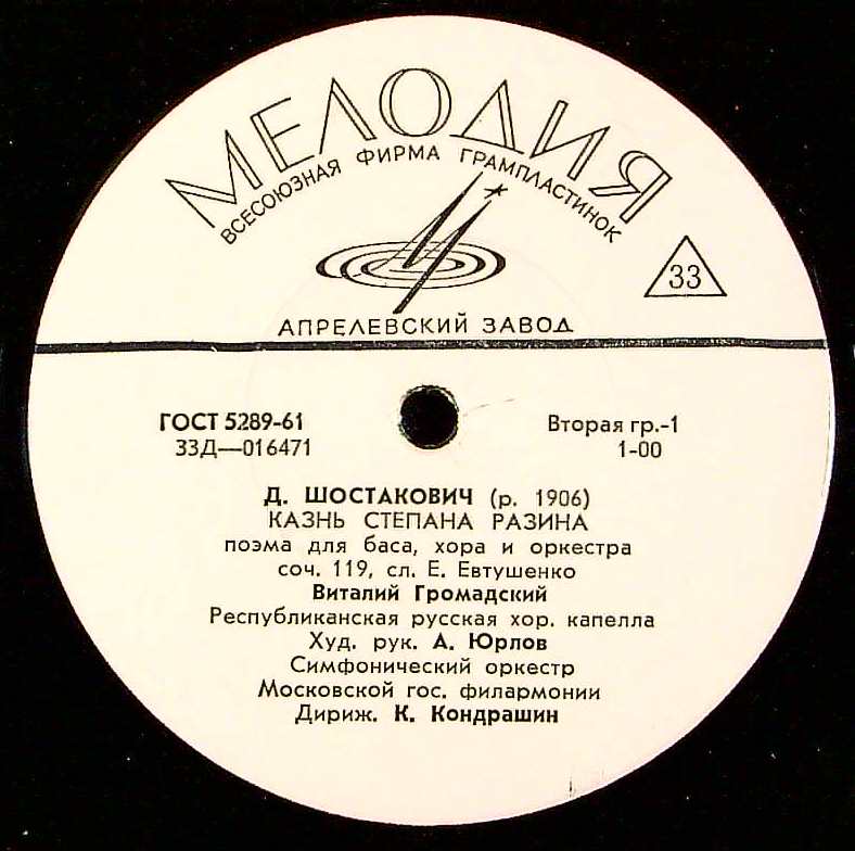 商品コード:REG-3275t[露MELODIYA] K.コンドラシン指揮/ ショスタコーヴィチ:交響曲9番, ステパン・ラージンの処刑