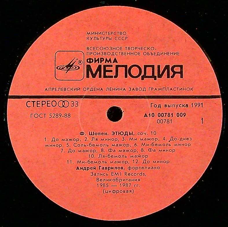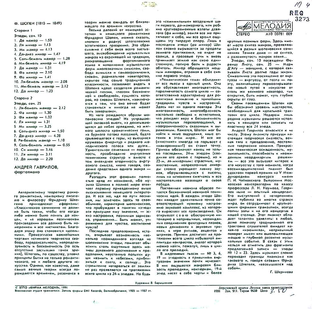商品コード:REG-3273[露MELODIYA] A.ガヴリロフ(pf) / ショパン:練習曲