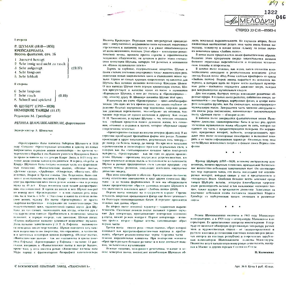 商品コード:1322-046n[MELODIYA] R.シャムリカシヴィリ(pf) / シューマン:クライスレリアーナ, シューベルト:ドイツ舞曲