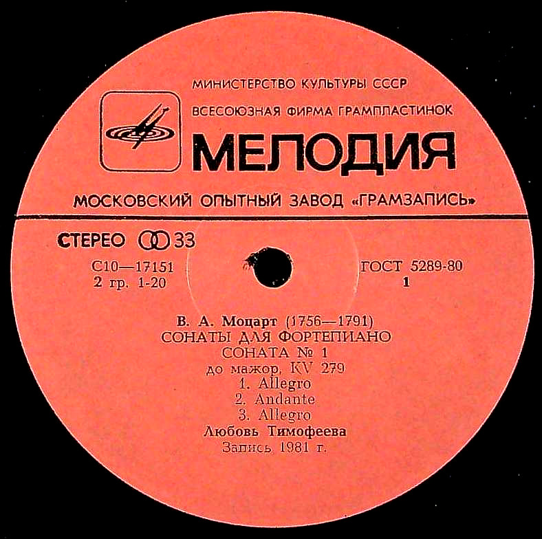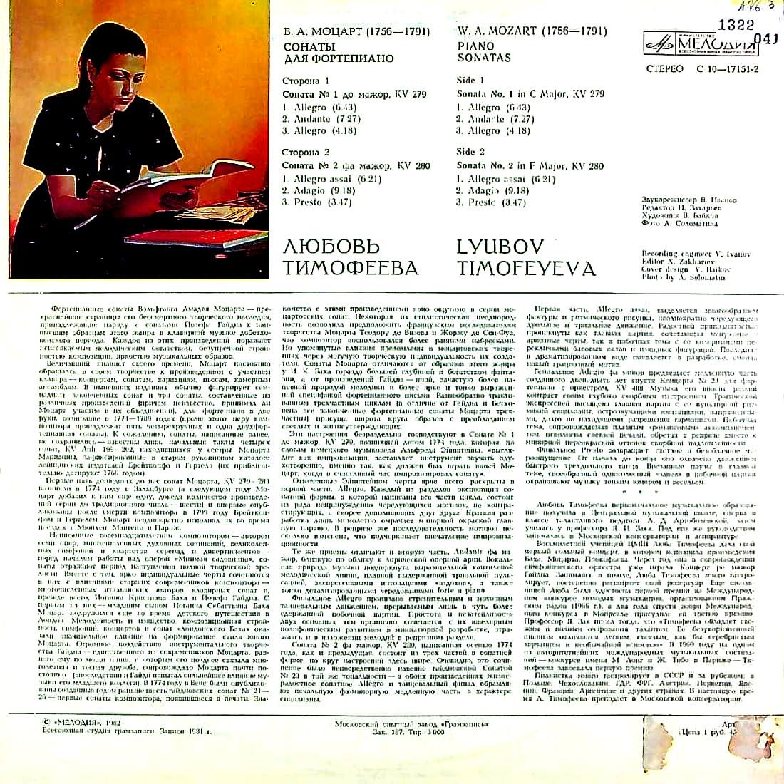 商品コード:1322-041n[MELODIYA] L.チモフェーエワ(pf) / モーツァルト:Pfソナタ集-1/Pfソナタ1, 2番
