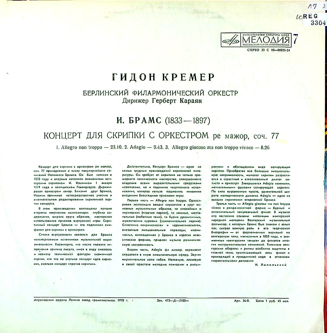 商品コード:REG-3304[露MELODIYA] G.クレーメル(vn)/ ブラームス:Vn協奏曲