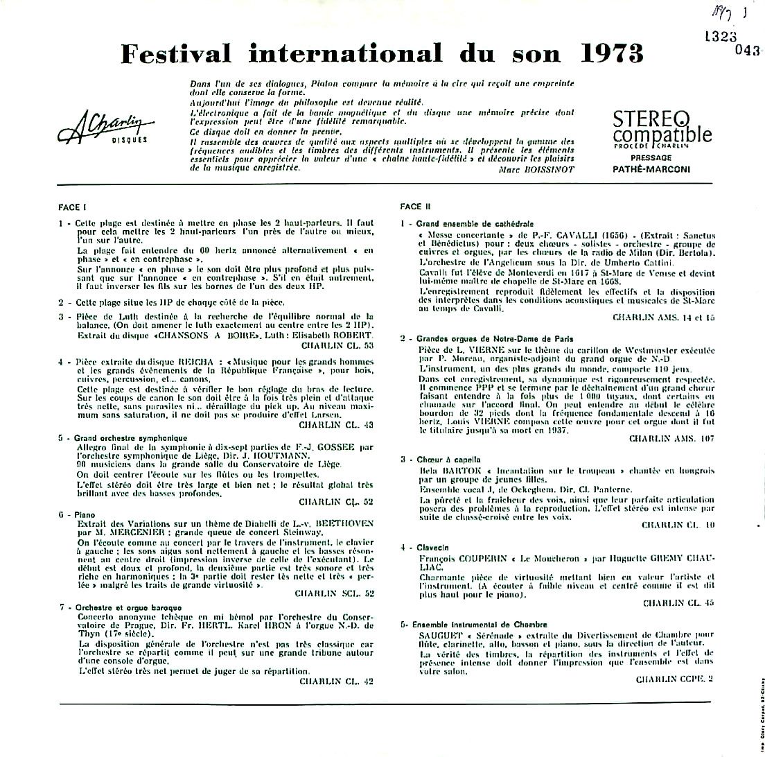 商品コード:1323-043[Charlin] E.ロベール(lute) V.スメターチェク指揮 他 / 1973・インターナショナル・サウンド・フェスティバル