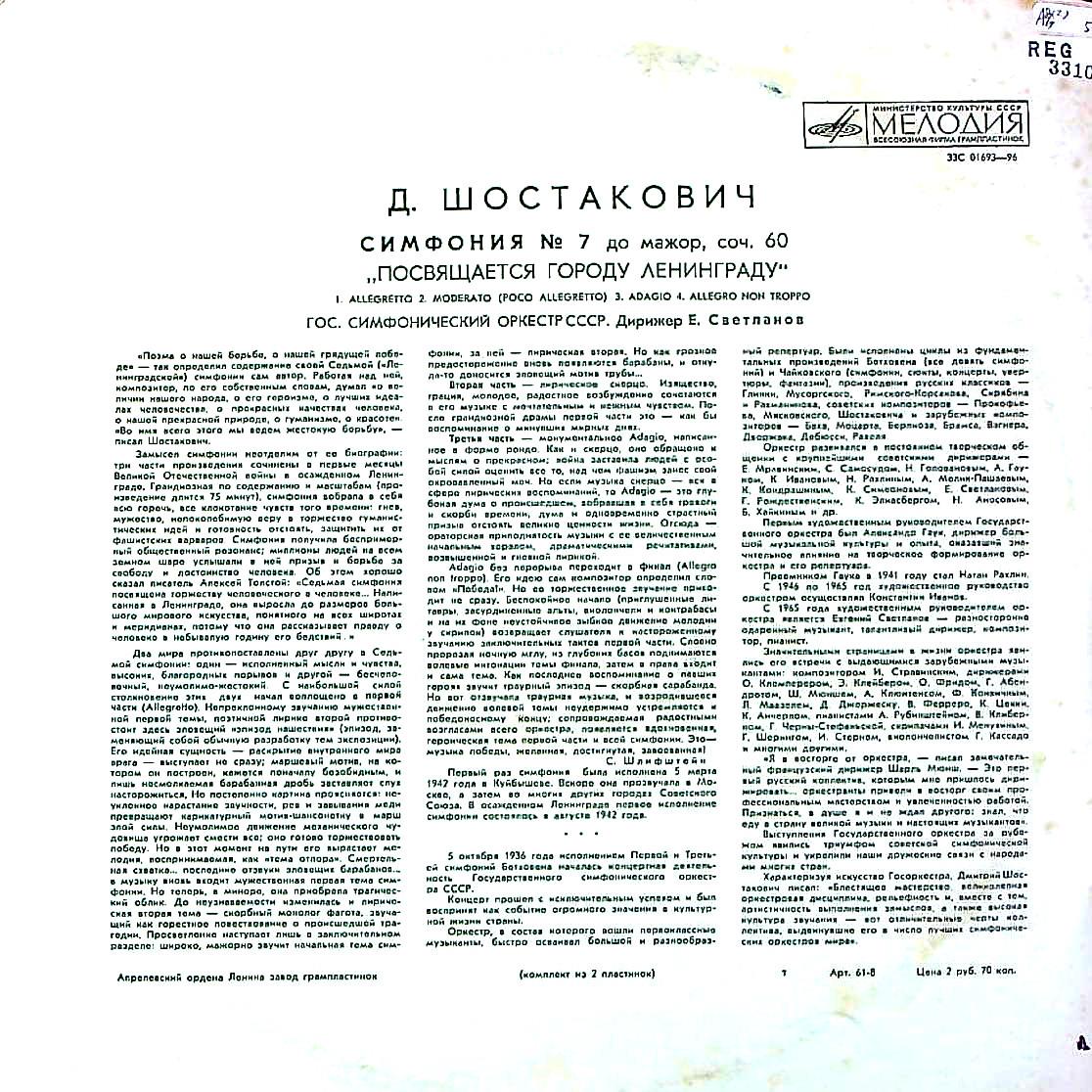 商品コード:REG-3310[露MELODIYA] E.スヴェトラーノフ指揮/ ショスタコーヴィチ:交響曲7番「レニングラード」