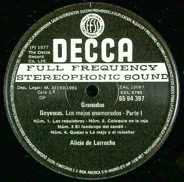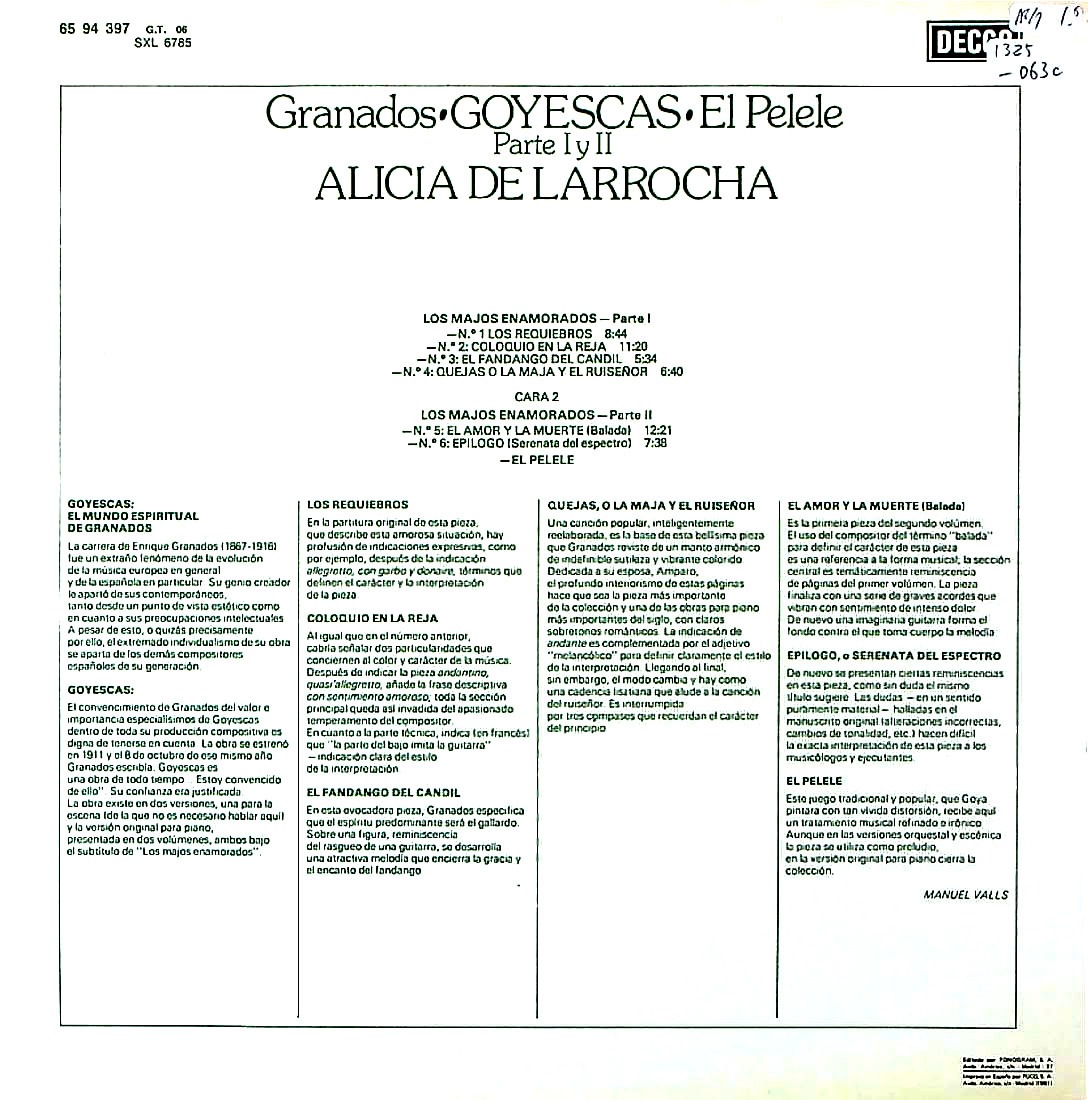 商品コード:1325-063c[DECCA] A.d.ラローチャ(pf) / グラナドス:ゴイェスカス(恋する若者たち)全8曲~7曲