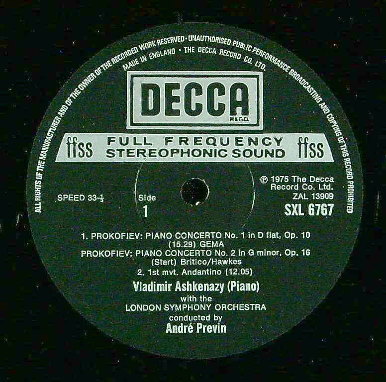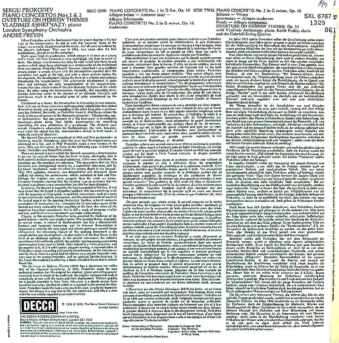 商品コード:1325-061[DECCA] V.アシュケナージ(pf)/ プロコフィエフ:Pf協奏曲1, 2番, ヘブライの主題による序曲
