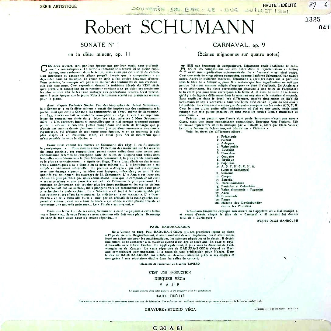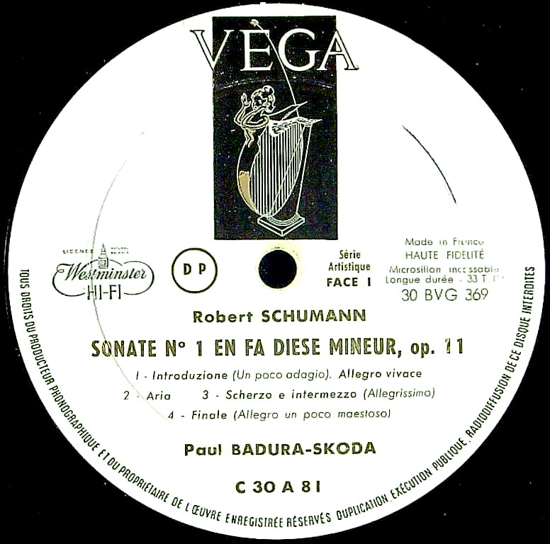 商品コード:1325-041[VÉGA] P.バドゥラ・スコダ(pf) / シューマン:Pfソナタ1番, 謝肉祭(全20曲)