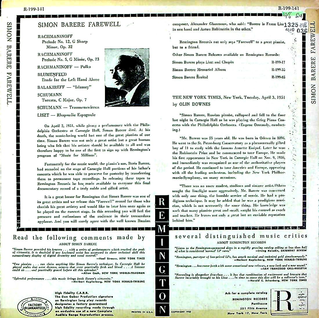 商品コード:1325-036p[REMINGTON] S.バレル(pf) / コレクターズ・シリーズ・「シモン・バレル-1」