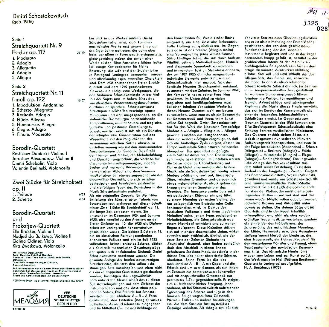 商品コード:1325-028t[ETERNA] ボロディンQt./ ショスタコーヴィチ:弦楽四重奏曲9, 11番 他