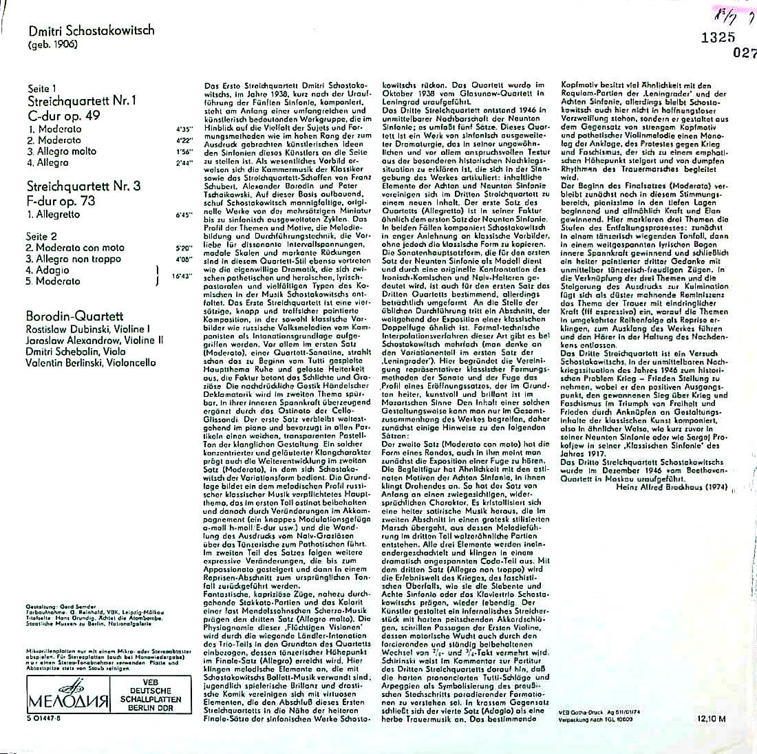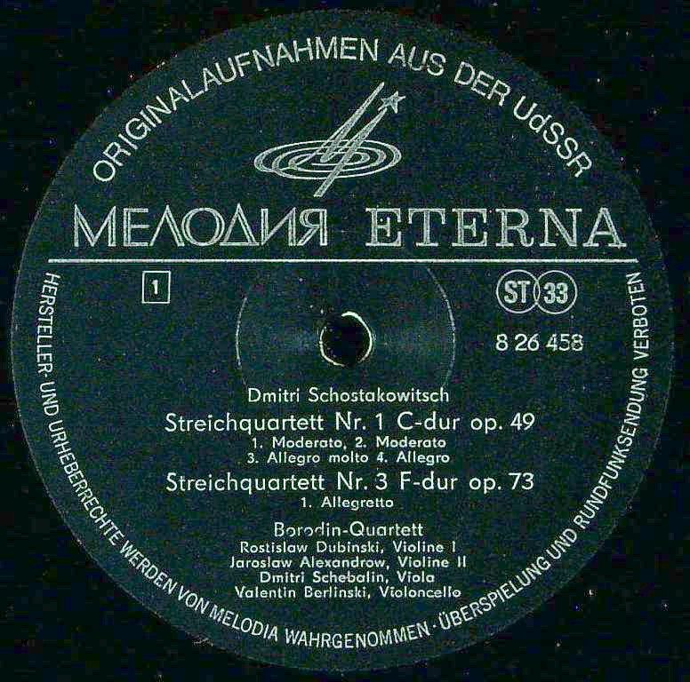 商品コード:1325-027t[ETERNA] ボロディンQt./ ショスタコーヴィチ:弦楽四重奏曲1, 3番