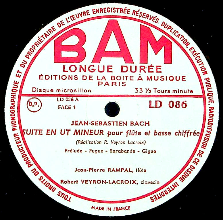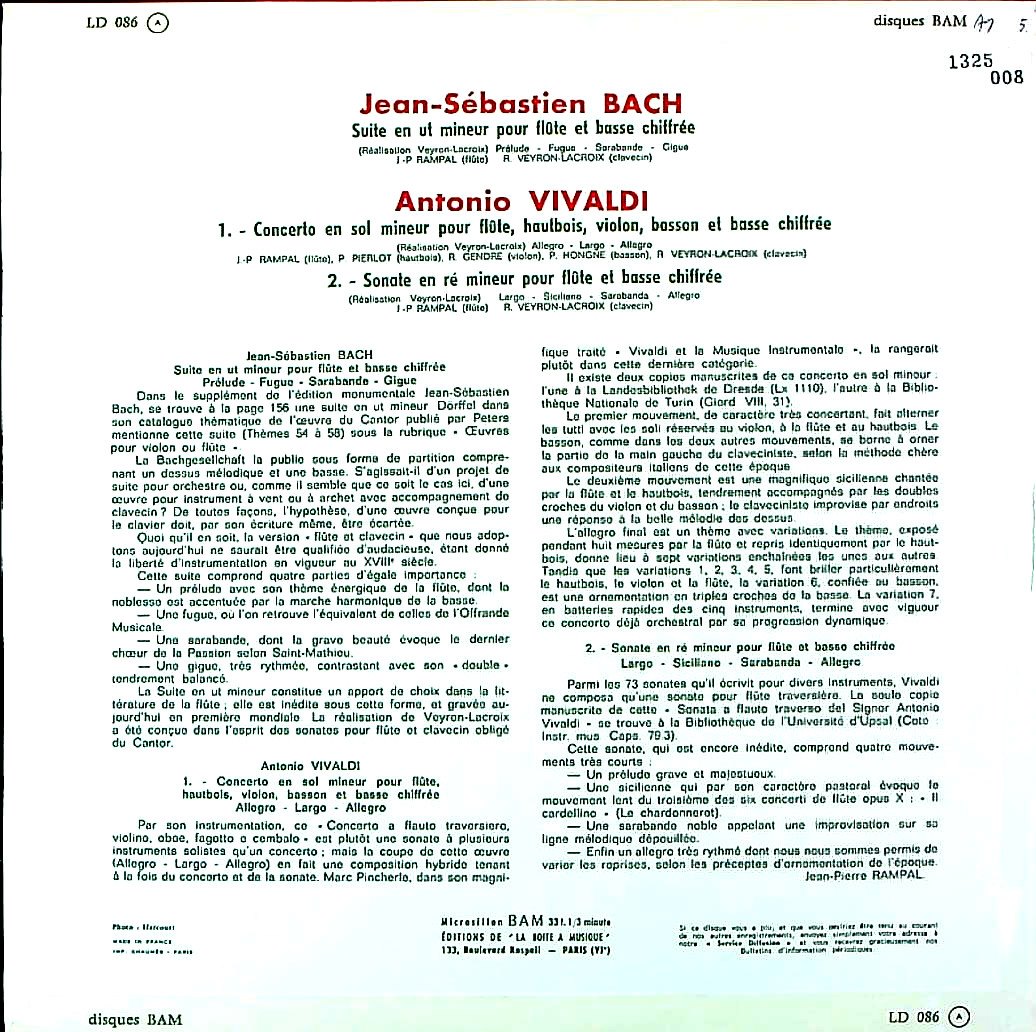 商品コード:1325-008[BAM] J.P.ランパル(fl) R.ヴェイロン・ラクロワ(cemb) 他/ バッハ:Flソナタ, ヴィヴァルディ:協奏曲, Flソナタ