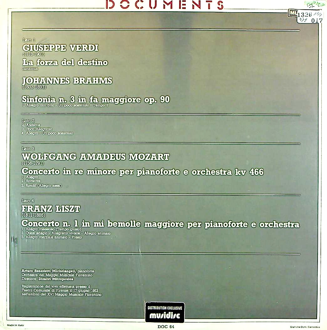商品詳細:フランス人コレクターが個人として40年に亘って収集した演奏家別のコレクションをそのまま「コレクターズ・シリーズ」としてセットで出すことにした。当社では初の試みとなる。長年かけた厖大な時間はお金には換算できない。また縁あって集まったコレクションを散逸させず後世に受け継ぐことも国を跨いだ文化継承になるだろう。レーベルは複数にまたがり、オリジナル盤だけとは限らない、また意に沿わない国の盤が混じることもある。それらをご承知の上でご検討いただけると幸いである。基本バラセットである。今回は「ミケランジェリ-3(ライブ録音)」。アルトゥーロ・ベネデッティ・ミケランジェリ( 1920– 1995)はイタリア・ブレーシャ地方生まれのピアニスト。生前より伝説的なピアニストと称される一方で、奇行の多さから変人としても有名であった。10歳でミラノ音楽院に入学。父親の主張により、一時期医学を学んだこともある。1938年、18歳で国際イザイ音楽祭に参加。一次予選の演奏から早くも注目を集めるが、初見が苦手であったことが災いし、第7位の入選にとどまった。翌1939年、ジュネーヴ国際音楽コンクールで優勝し、審査員長のアルフレッド・コルトーから「リストの再来」と賞賛された。1955年にショパン・コンクールの審査員及び公式ピアニストに選ばれたことを機に活動が充実。以後、世界中でコンサートを開き、その圧倒的なテクニックと比類のない美しいピアノの音色で瞬く間に名声を確立した。「ミケランジェリ国際ピアノ・マスタークラス」を母国で開催し、エリオドーロ・ソッリマほか多くの弟子を獲ったことでも知られる。マウリツィオ・ポリーニやマルタ・アルゲリッチも彼の指導を受けていた。非常に強い完璧主義からコンサートのキャンセルを頻発する、いわゆるキャンセル魔としても有名になり、次第に年間に「実際に」執り行われた演奏会が10回に満たないという例も珍しくなくなっていった。しかし、その貴重な演奏会が更に評判を呼び、一層ミケランジェリというピアニストを伝説に押し上げて行った。録音嫌いで有名であり、スタジオ録音は少ない。逆にライヴ録音のLPが多数出ている点で通常のピアニストとの違いを見せる。今回はライブ録音のLPだけを集めた全6点7枚バラセット。録音の性質上、米国盤/イタリア盤が中心となる。