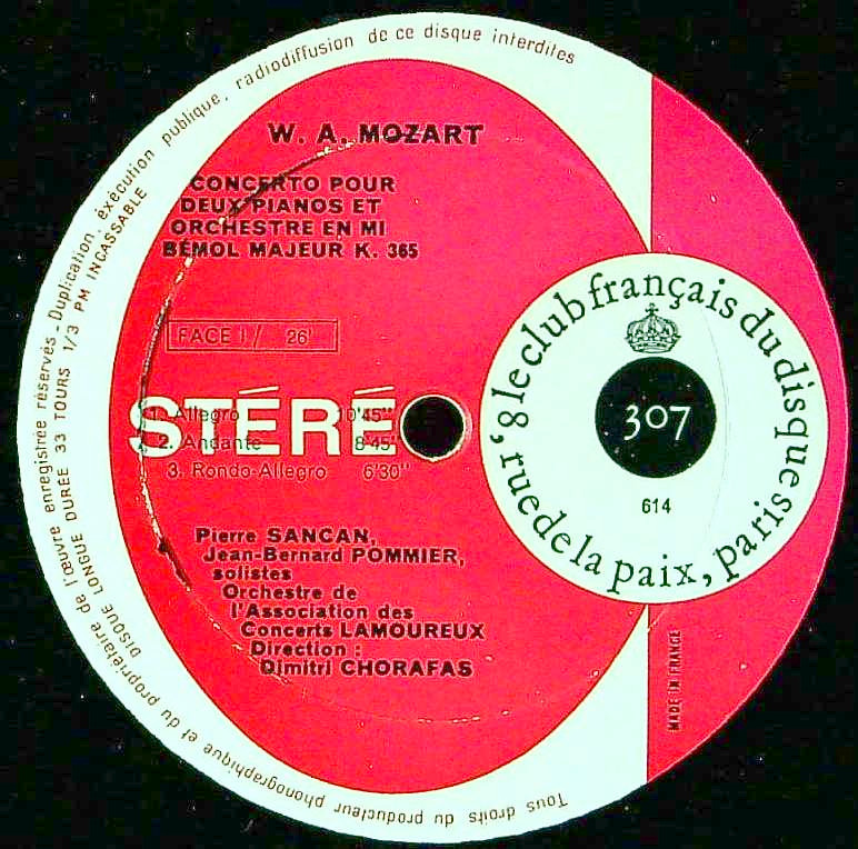 商品コード:1326-011[Club Français] P.サンカン, J.B.ポミエ, C.シリー(pf)/ モーツァルト:2Pf協奏曲, 3Pf協奏曲