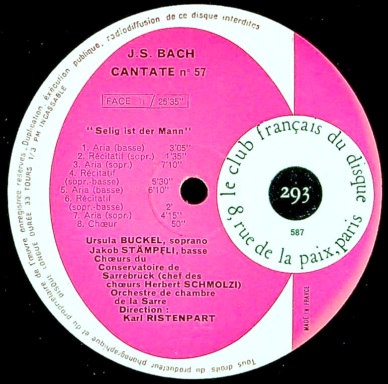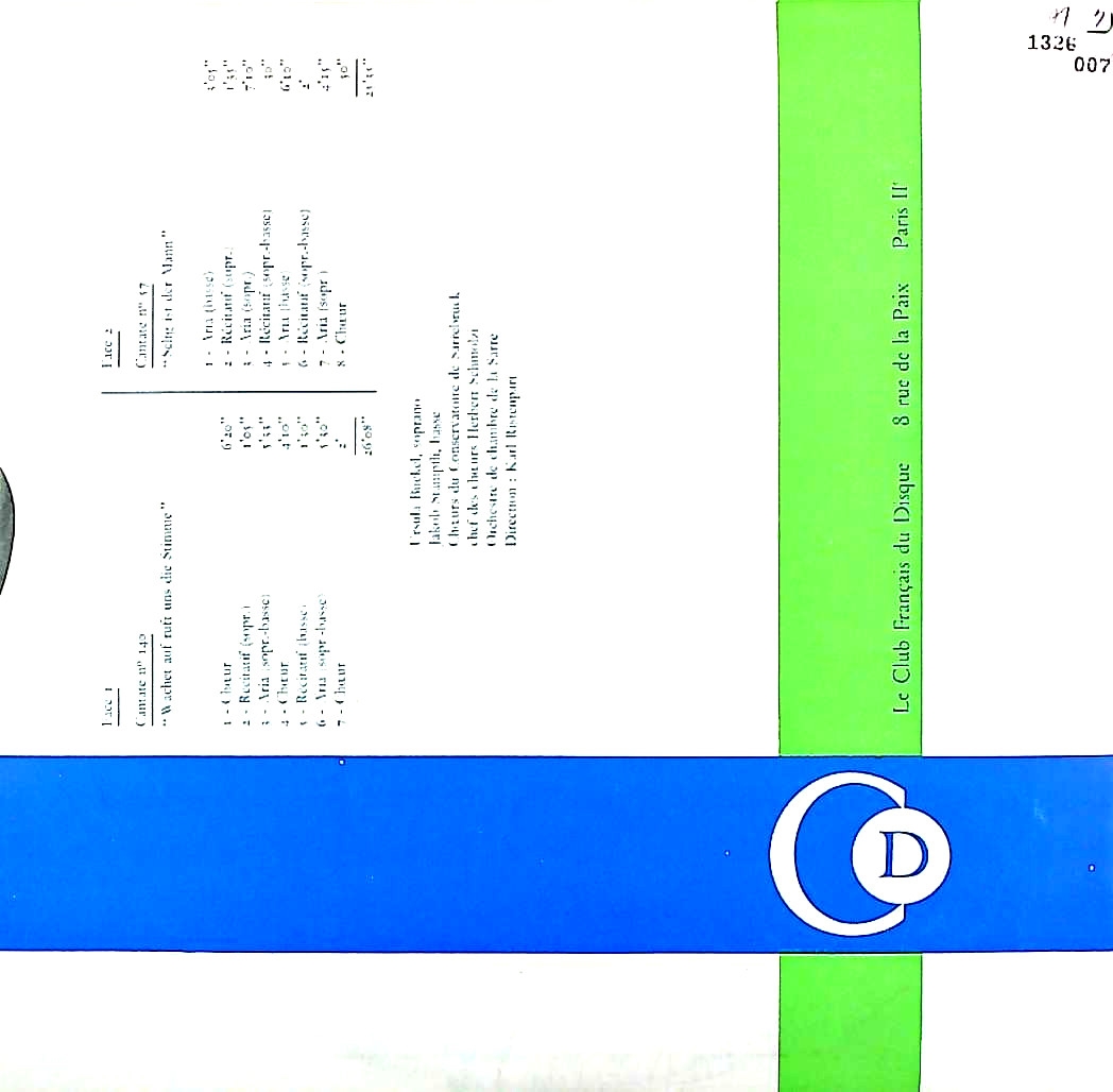 商品コード:1326-007[Club Français] K.リステンパルト指揮/ バッハ:カンタータ140, 57番