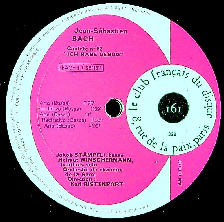 商品コード:1326-005[Club Français] K.リステンパルト指揮/ バッハ:カンタータ82, 159番