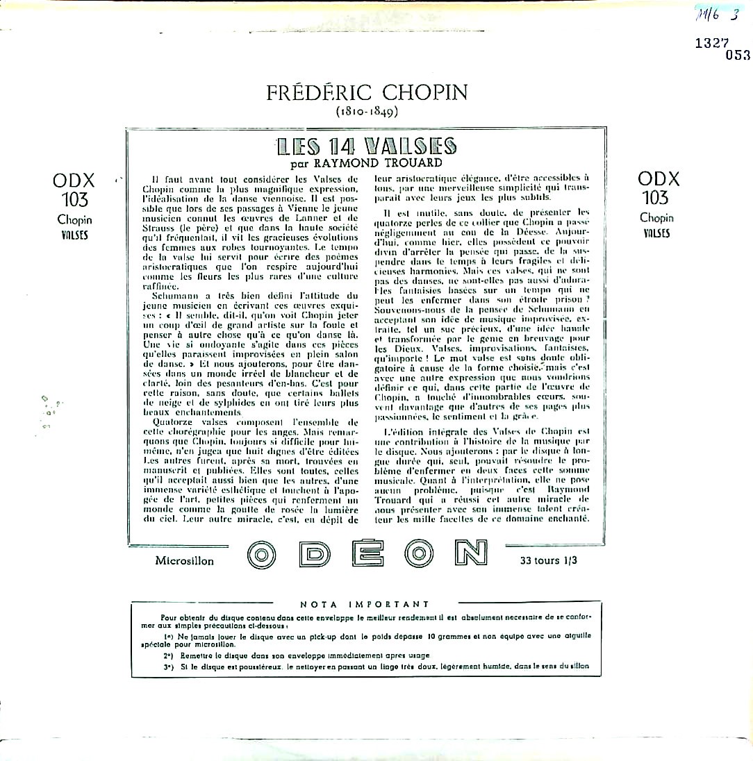 商品コード:1327-053p[ODÉON] R.トゥルアール(pf) / ショパン:14のワルツ