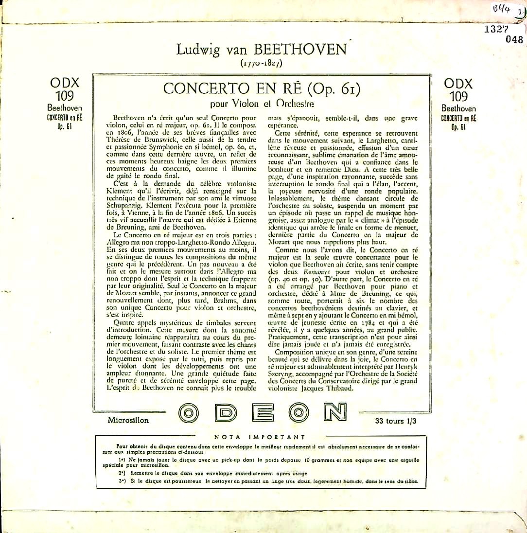 商品コード:1327-048[ODEON] H.シェリング(vn)/ ベートーヴェン:Vn協奏曲