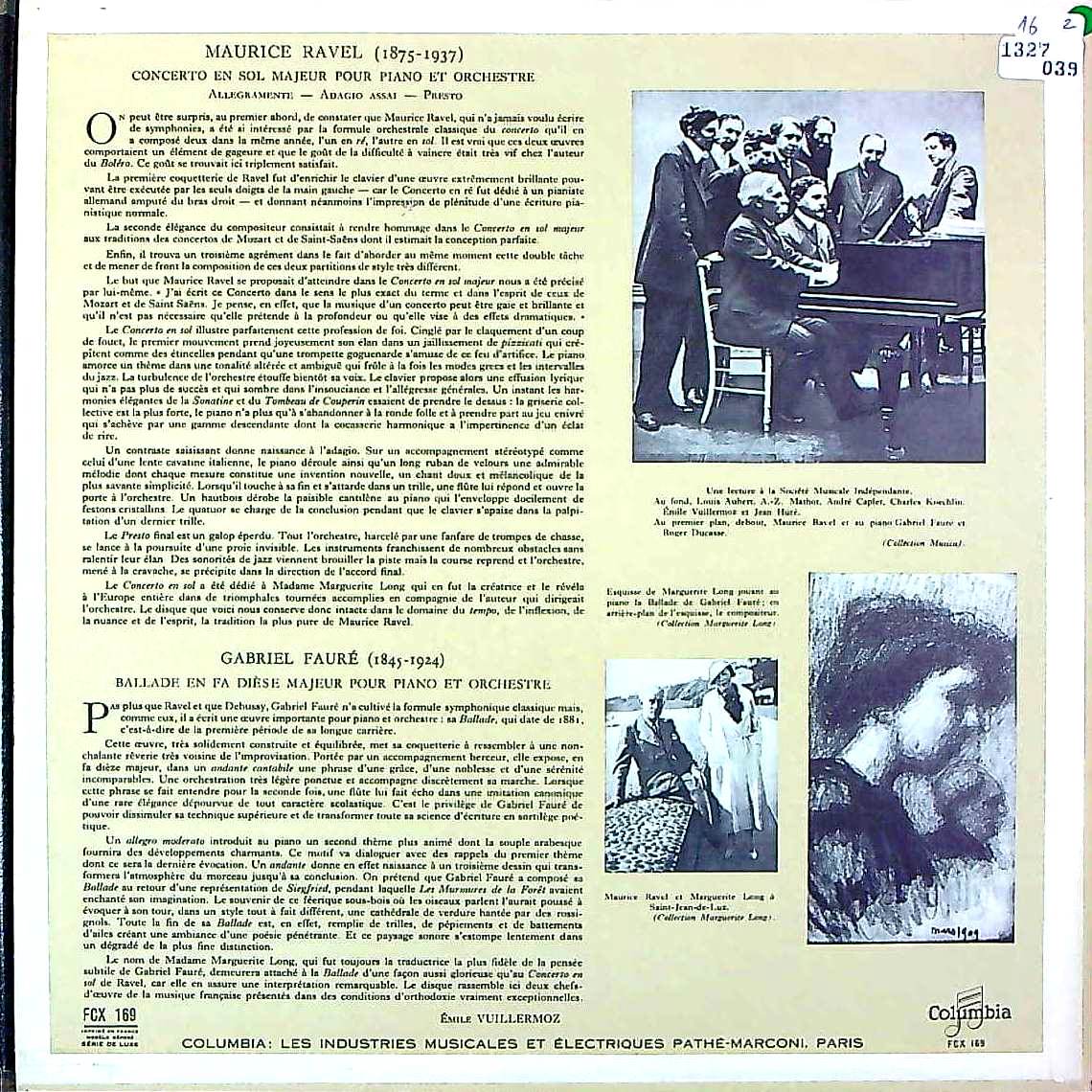 商品コード:1327-039[COLUMBIA] M.ロン(pf)/ フォーレ:Pfと管弦楽のためのバラード, ラヴェル:Pf協奏曲
