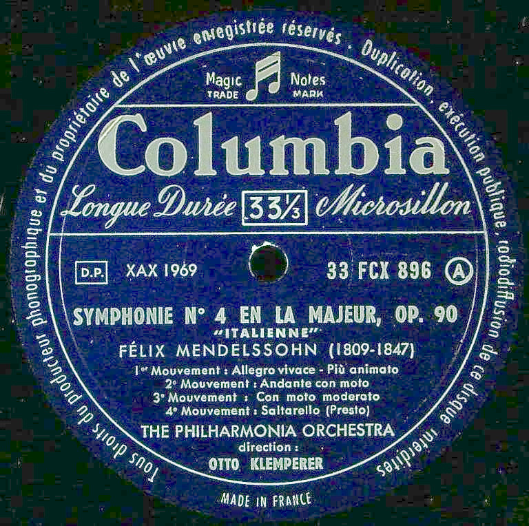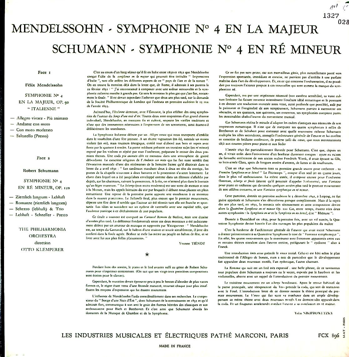 商品コード:1327-028[COLUMBIA] O.クレンペラー指揮/ メンデルスゾーン:交響曲4番「イタリア」, シューマン:交響曲4番
