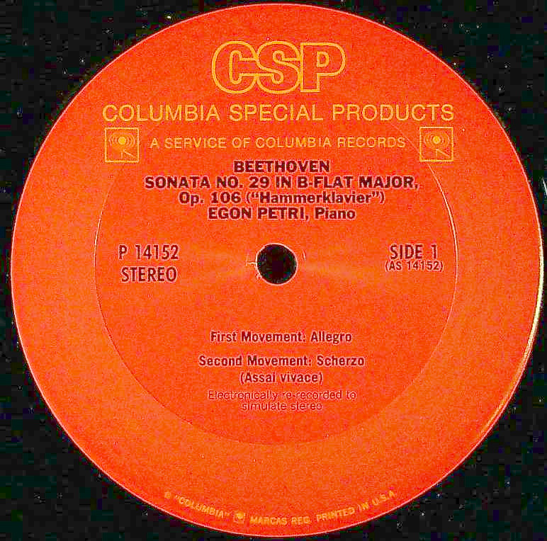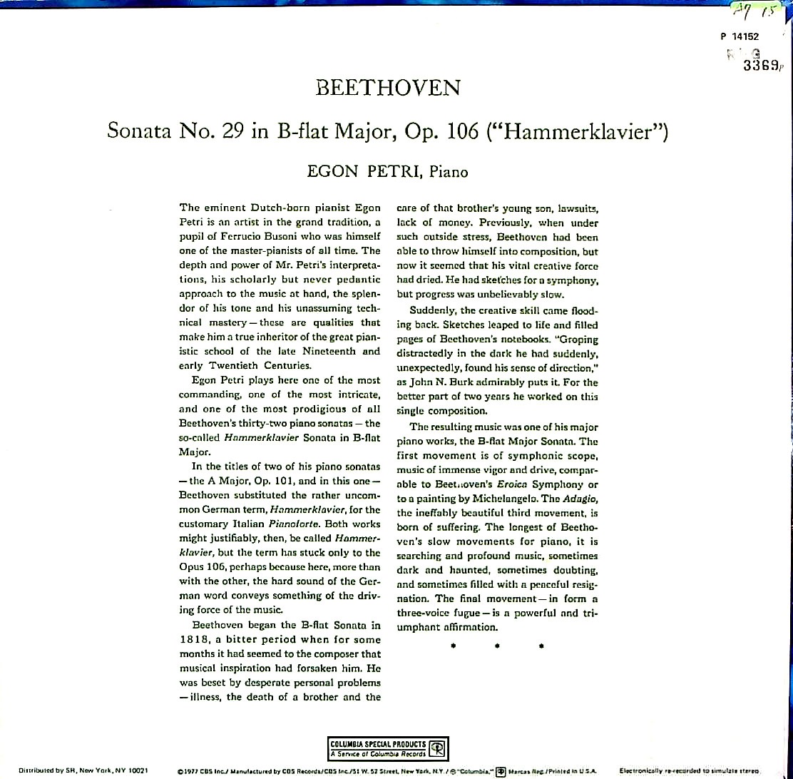 商品コード:REG-3369p[米COLUMBIA] E.ペトリ(pf) / ベートーヴェン:Pfソナタ29番「ハンマークラヴィア」