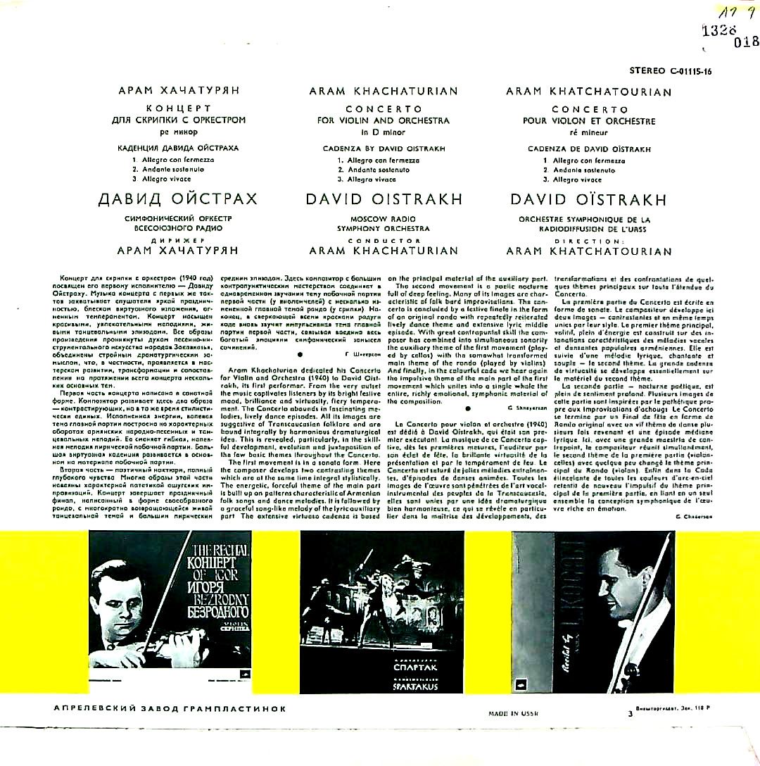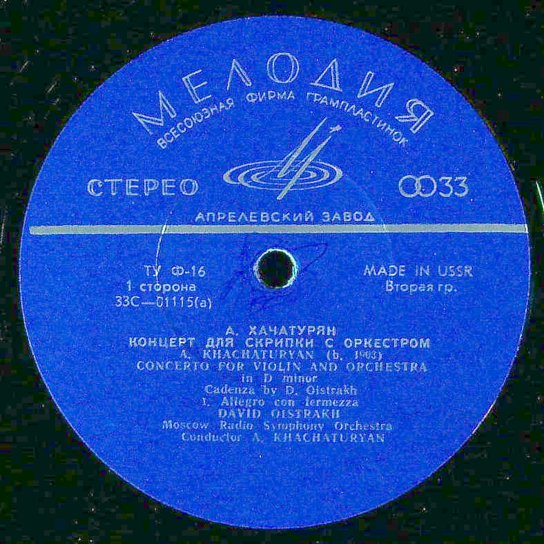 商品コード:1328-018n[MELODIYA] D.オイストラフ(vn)/ ハチャトゥリアン:Vn協奏曲
