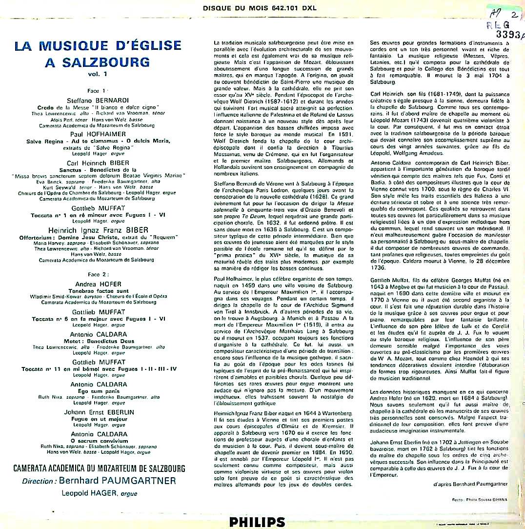 商品コード:REG-3393p[欧PHILIPS] B.パウムガルトナー指揮/ ザルツブルクの教会音楽集Vol.1/ベルナルディ, ホフハイマー, ビバー 他