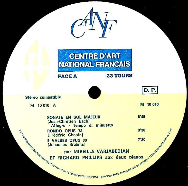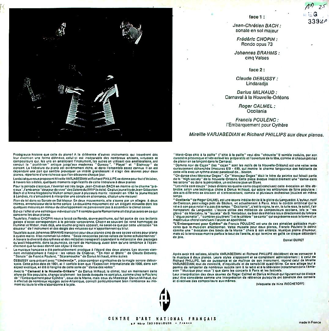 商品コード:REG-3392p[仏CANF] M.ヴァルベディアン, R.フィリップ(pf) / 2Pf作品集/J.C.バッハ, ショパン, ブラームス, ドビュッシー, ミヨー , カルメル, プーランク