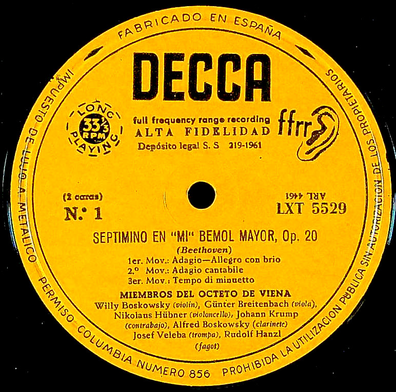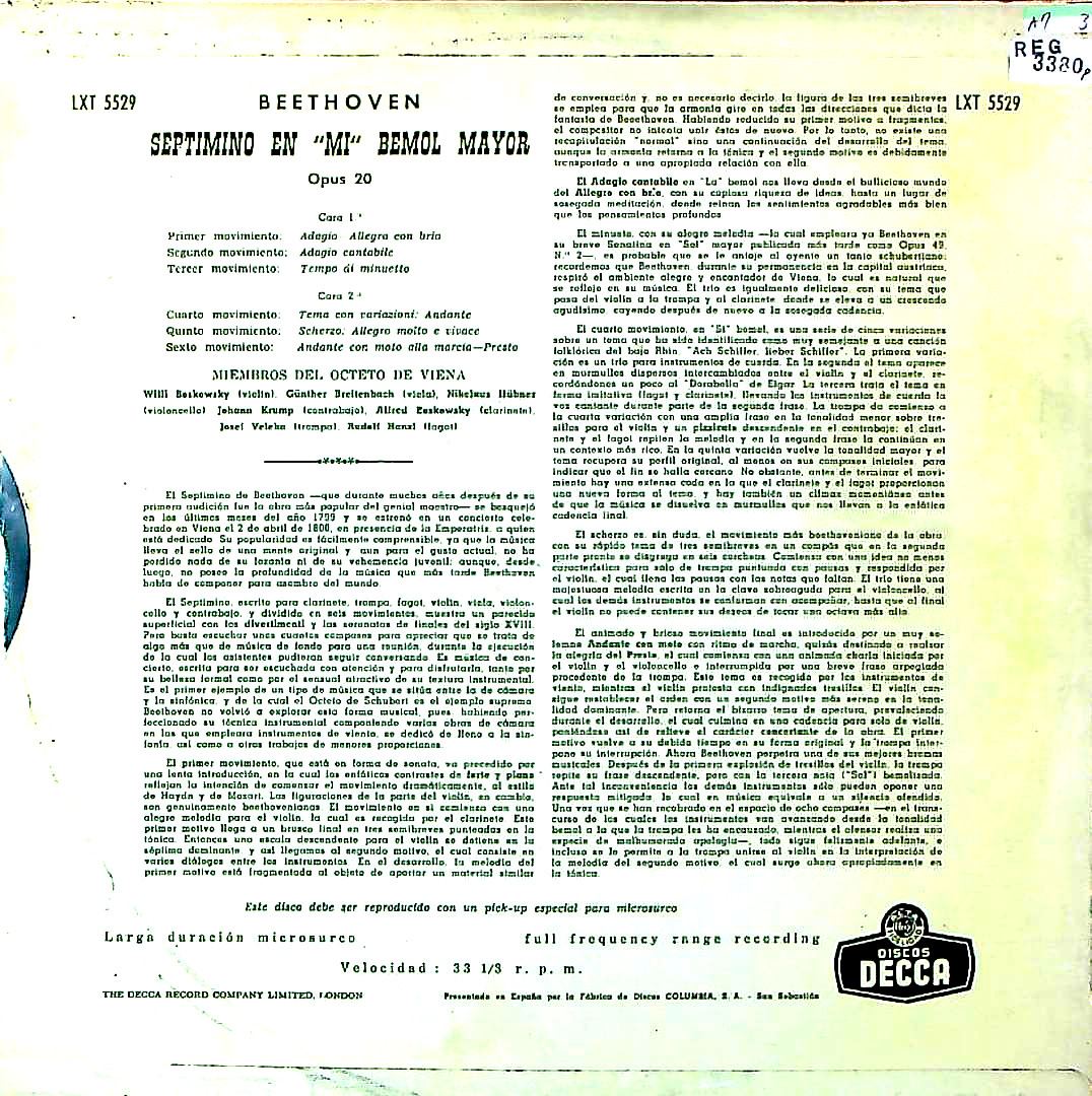 商品コード:REG-3380p[スペインDECCA] ウィーン八重奏団メンバー/ ベートーヴェン:七重奏曲